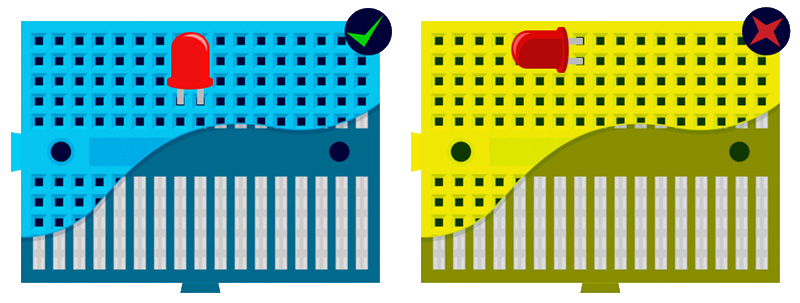 With a broadboard, components can only be connected across the columns and now the rows. Compnents can also be connected across the sides of the board.